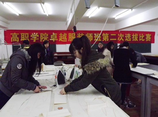 为了检验“小师傅、大徒弟”卓越服装师班前期的学习效果,培养优秀的服装工艺技能人才,高职学院于12月15日在阳光校区举行了卓越服装师班第二次选拔比赛,21名大徒弟和36名11级专业优秀学生在专业指导老师张丹和7名小师傅的带领下进行了为期一天的选拔比赛。