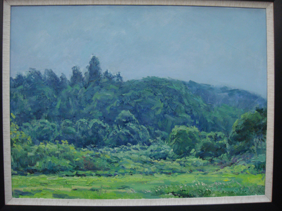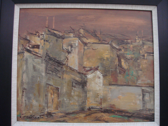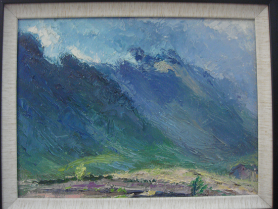 (黄汉军老师的布面油画“烟雨玉龙山”)