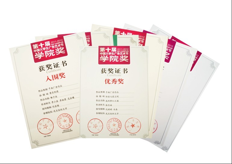 在第十届中国大学生广告艺术节“学院奖”竞赛中,我校传媒学院广告专业学子获得优秀奖和入围奖共计14个,其中优秀奖3个。近日,学院收到了大赛主办方寄来的沉甸甸的获奖证书。