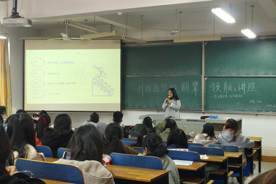 11月8日下午3点40,外语学院于03-219举办朋辈领航讲座。此次讲座的主讲人为英语11501班向钰。向钰曾荣获“自强之星”,优秀学生干部,三好学生等称号,在“纸鸢”志愿队任职三年,也带领“纸鸢”团队摘得“纺大十大榜样人物”。此次交流会主题为:“迈出出象牙塔,走向新生活”。此次经验交流会面向学院全体大一大二学生。