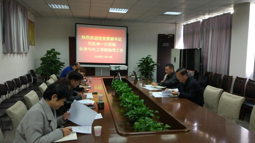 11月13日上午,校党委副书记刘在洲一行到化工学院调研指导工作。科技处负责人、化工学院领导班子成员及科研平台相关负责人参加了座谈会。