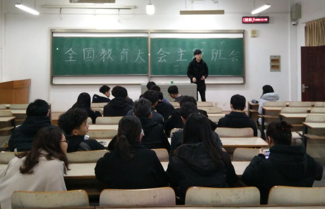 2018年9月10日至11日,全国教育大会在北京胜利召开,习近平总书记出席大会并发表重要讲话,会议深入分析研究了教育工作面临的新形势新任务,对当前和今后一个时期教育改革发展作出了战略部署。为贯彻落实《武汉纺织大学关于全面开展全国教育大会精神宣讲对谈活动的通知》,材料学院组织学生利用晚点名班会进行进一步学习。