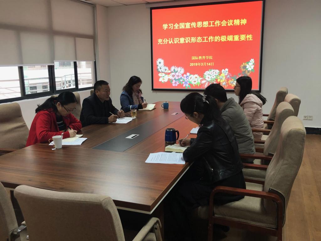 3月14日,国际学院组织了主题为“学习全国宣传思想工作会议精神,充分认识意识形态工作的极端重要性”的政治理论学习活动。