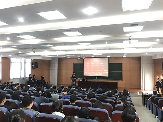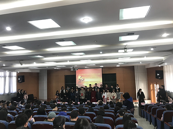 4月11日,2019武汉纺织大学本科生录取通知书设计大赛颁奖典礼在南湖校区尚美楼T201举行。招就处负责人、艺术学院领导班子全体成员及获奖学生出席了颁奖典礼。会议由艺术学院党委副书记张鹏主持。