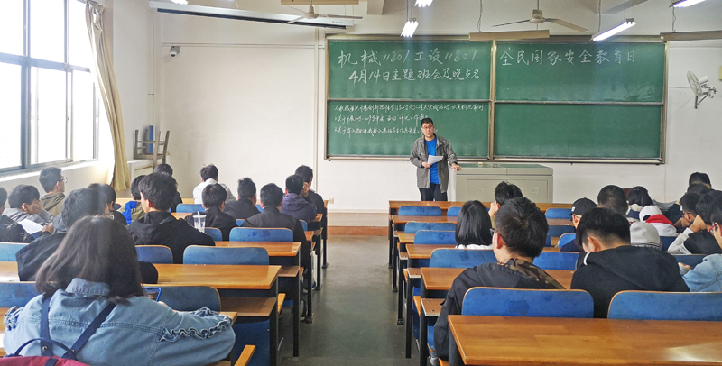 在4月14日的主题班会上,各辅导员、班主任组织学生集体学习了《中华人民共和国国家安全法》等相关法律法规,让同学们充分认识国家安全的重要战略地位与意义,知晓公民个人在维护国家安全中的作用和义务。有的班级集中观看了国家安全视频资料;有的班级结合迎接建国70周年和第七届世界军运会,带领同学们谈了对于校园安全、网络安全的体会;有的班级从大学生切身安全与利益展开大学生安全教育,组织同学们学习安全知识,认识到安全的重要性。