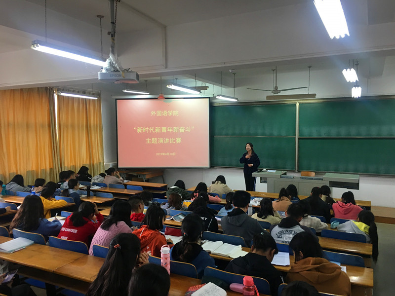 4月10日下午14:00,外语学院“新时代新青年新奋斗”主题演讲比赛在阳光校区崇志楼515教室举行。来自全院的13名选手参加了此次主题演讲比赛,外语学院团委书记、辅导员阎浩主持。