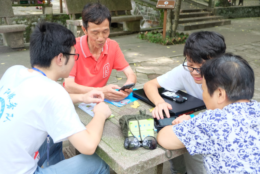 志愿者们耐心细致的现场指导老人们使用智能手机,老人为社会实践队员们分享自己的人生经历,老人们用自己丰富的岁月历程为同学们带来一堂堂精彩的思政课。