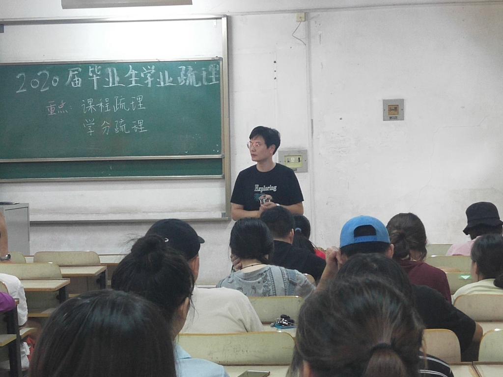 江学为对2019届毕业情况进行了简单的介绍和分析。同学们对于未来的发展问题,无论是毕业、考研还是出国,一切都建立在学业合格、符合毕业条件的基础上。希望大四同学提高对重修和选课的重视,强调了本次期初的选课和重修报名时机的重要性。
