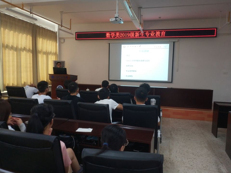 9月13日,数学与应用数学系主任石先军教授、信息与计算科学系主任江健副教授在崇真楼A4008学院会议室为数学专业新生开展专场专业教育,详细介绍了专业人才培养的基本思路、培养目标、培养要求和专业特色。