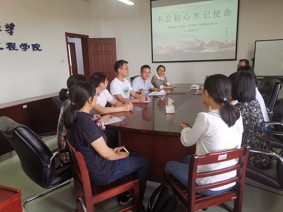 随后,学院党委副书记秦梦向全体党员教师详细讲解了材料学院“不忘初心、牢记使命”主题教育实施方案,要求党员教师在开展教育学习活动的过程中,始终牢记初心,担起自己的使命、查找工作生活中的差距,进一步改进工作作风,把主题教育学习活动落到实处。