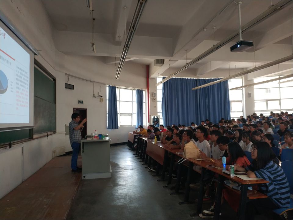 夏明桂从学生手边矿泉水瓶底的PET标识的介绍为切入点,从衣食住行四个方面,通过衣服合成纤维面料、外卖打包盒、塑料管、油漆等装修材料、汽车燃油等大家熟悉的用品,阐述石油化工在日常生活中的应用。他以沙特油田被炸原油减产后对国际原油期货的影响,分析全球地缘政治的转折,并以世界500强和中国500强企业中石油化工企业所占比重等数据,来分析世界石油和化工贸易的基本情况,以及石油化工在国际经济中的地位,用一系列的数据让同学们从宏观上感受中国化工行业的巨大增长潜力。