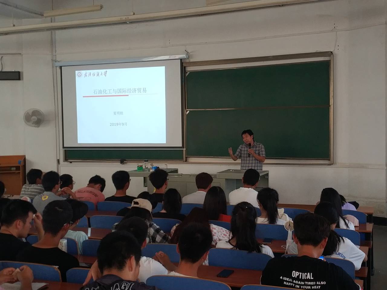 9月30日上午10点,崇志楼T201教室座无虚席,刚刚荣获“庆祝中华人民共和国成立70周年”纪念章的夏明桂教授正在给学生讲述题为《石油化工与国际经济贸易》的主题讲座。