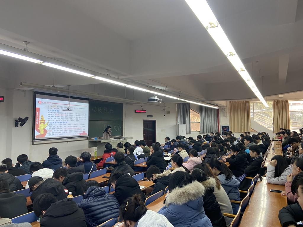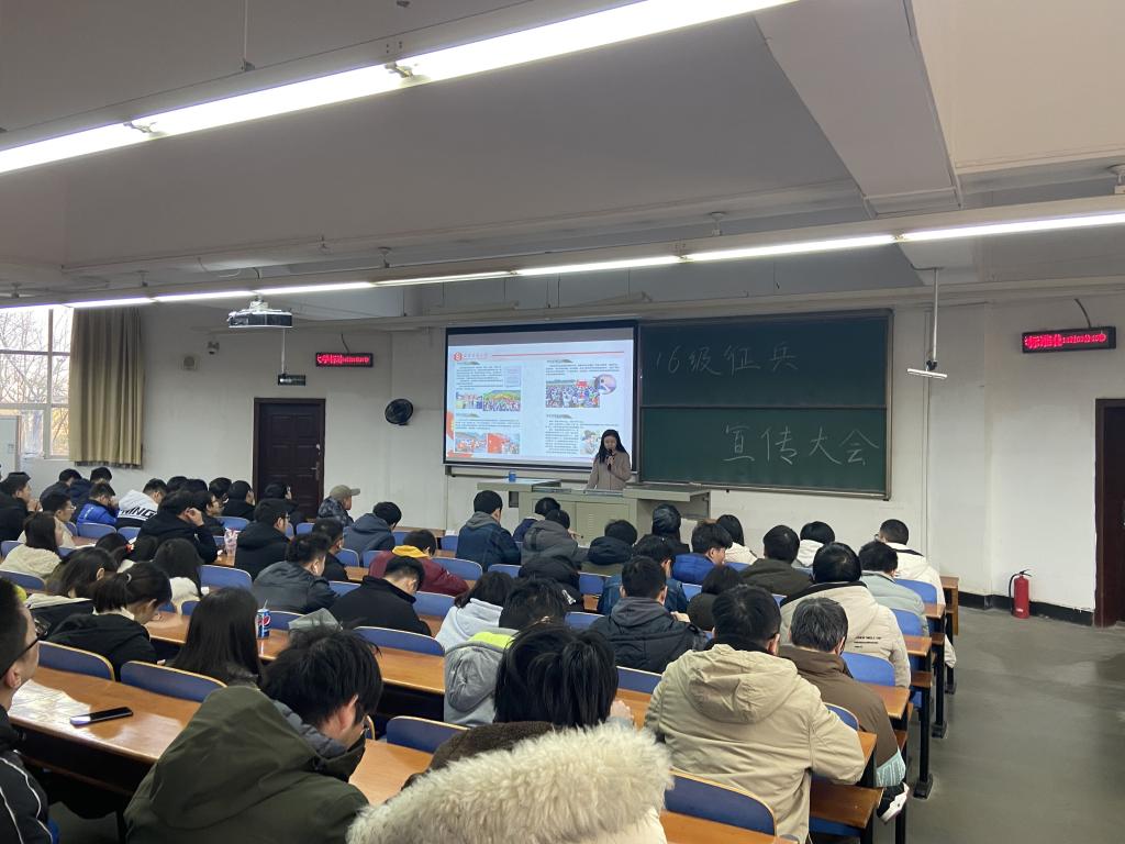 为贯彻落实征兵工作部署,做好2020年征兵宣传工作,激发毕业生参军报国的热情,发动优秀大学生踊跃参军入伍,12月27日下午,数计学院组织全体16级毕业生在崇志楼T102教室召开了毕业生征兵宣传动员大会。