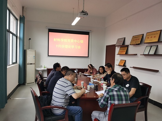 9月29日,材料学院组织党委中心组扩大学习会,专题学习习近平总书记对研究生教育工作的重要指示精神和全国研究生教育会议精神。学院全体党委委员及教师党支部书记参加了学习会,会议由院党委书记罗汉春主持。
