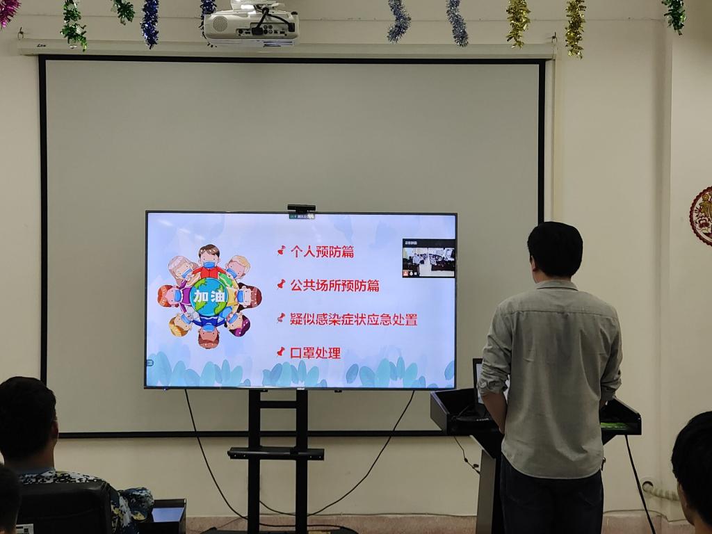 涂亚腾介绍了常态化校园疫情防控的要求和基本注意事项,提醒学生在学校防控不要大意,在教室和图书馆等人员密集的地方还是要注意保持距离,不聚集、不扎堆。对于出现发热学生,一定要第一时间报告和去校医务室进行相应的治疗;其次他介绍了关于安全教育方面的知识。他通过举例向同学们讲述了校园安全常识以及校园生活当中会存在的一些安全隐患,让大家学到了很多安全知识,并认识到在日常生活中防患于未然的重要性,让学生了解诈骗及校园贷等套路,及时为学生敲醒了安全的警钟。随后,涂亚腾还介绍了近期假期安全注意事项,提醒学生非必要不能外出,可以趁这几天的休息好好规划一下大学的生涯,给自己一个清晰的定位。