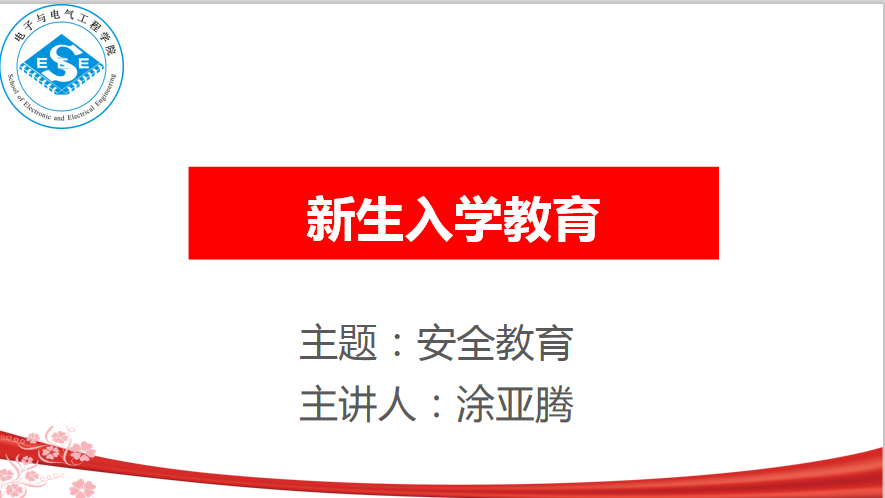 9月29日下午,电子电气学院在线上举行新生安全教育讲座。讲座由辅导员涂亚腾老师主持,全体大一新生在崇真楼南楼会议室主会场及三教209和T202两个会分场参加。