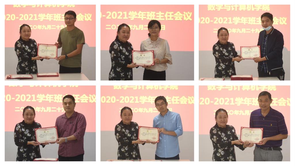 胡新荣为2020级班主任颁发聘书并总结讲话。胡新荣对班主任老师们尽职尽责培养人才的努力和奉献表示感谢,并对班主任们的工作提出要求:第一,充分认识班主任工作责任重大使命光荣,要以立德树人为核心,开展班级学风和班风建设;第二,找准定位,班主任工作是专业课堂的延申和辅导员思政工作的帮手,班主任在日常工作中要帮助学生进行学业规划,数计院学专业课程难度大,更需要同学们早些养成良好的学习习惯和得当的学习方法。同时,班主任要在日常和学生的接触中了解学生、融入学生、引领学生,为辅导员的思政工作当好参谋。第三,充分发挥班主任的专业优势,在专业学习和兴趣发展方面找好平衡点,既要学好专业又要学会生活,在不断创新中寻找到人生奋斗的方向,身心愉快的度过大学时光。