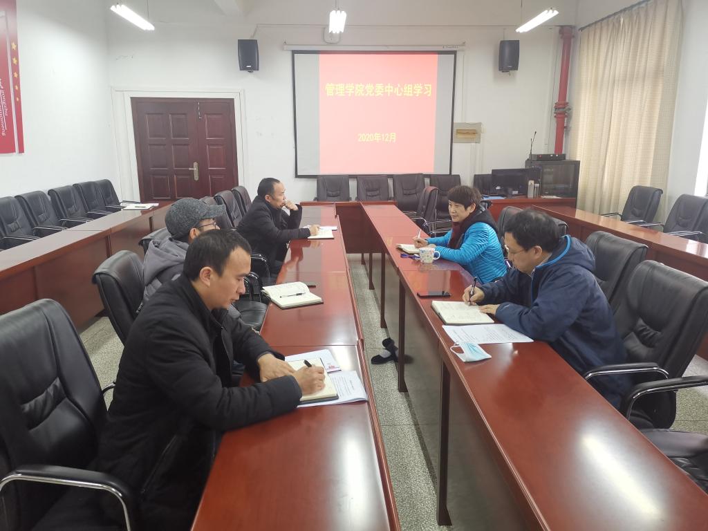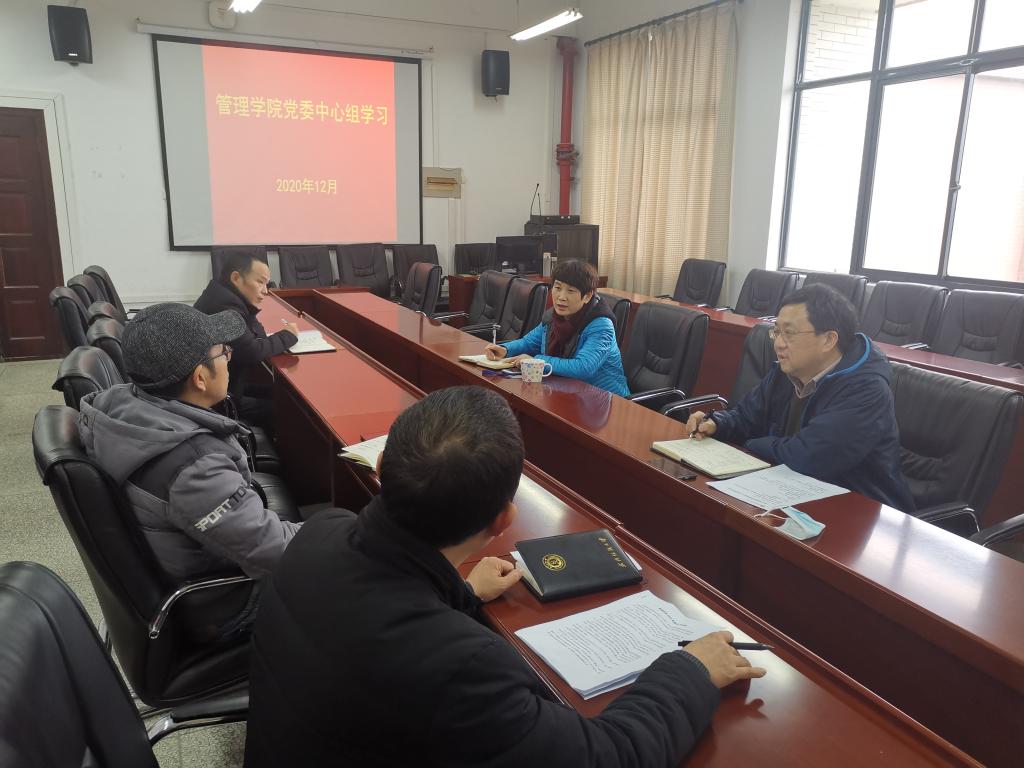 为深入学习贯彻党的十九届五中全会精神, 科学谋划学院“十四五”发展,12月3日下午,管理学院党委中心组在阳光校区崇德楼536会议室举行2020年第8次集体学习。学院党委书记滕胜娟主持学习会,院长王济平等全体领导班子成员参加学习。