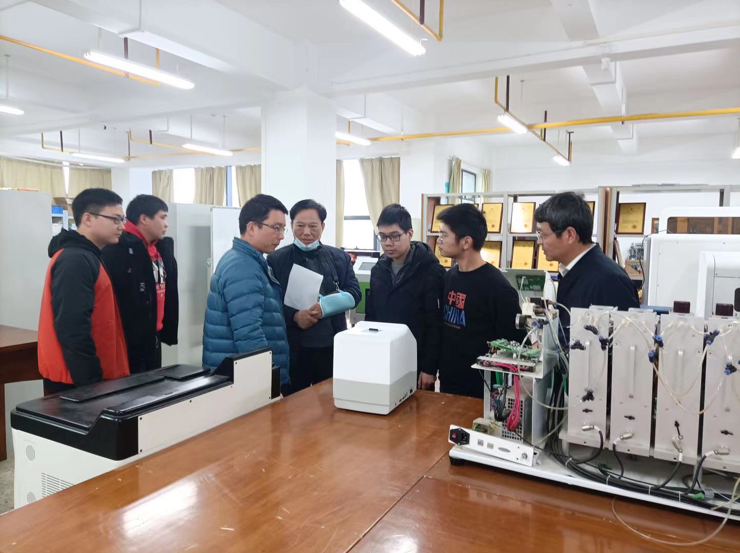 最后,评审老师们走访实验室查看作品实物,他们结合作品的科学性、先进性、现实意义、综合权重等方面因素,进行指导和建议。