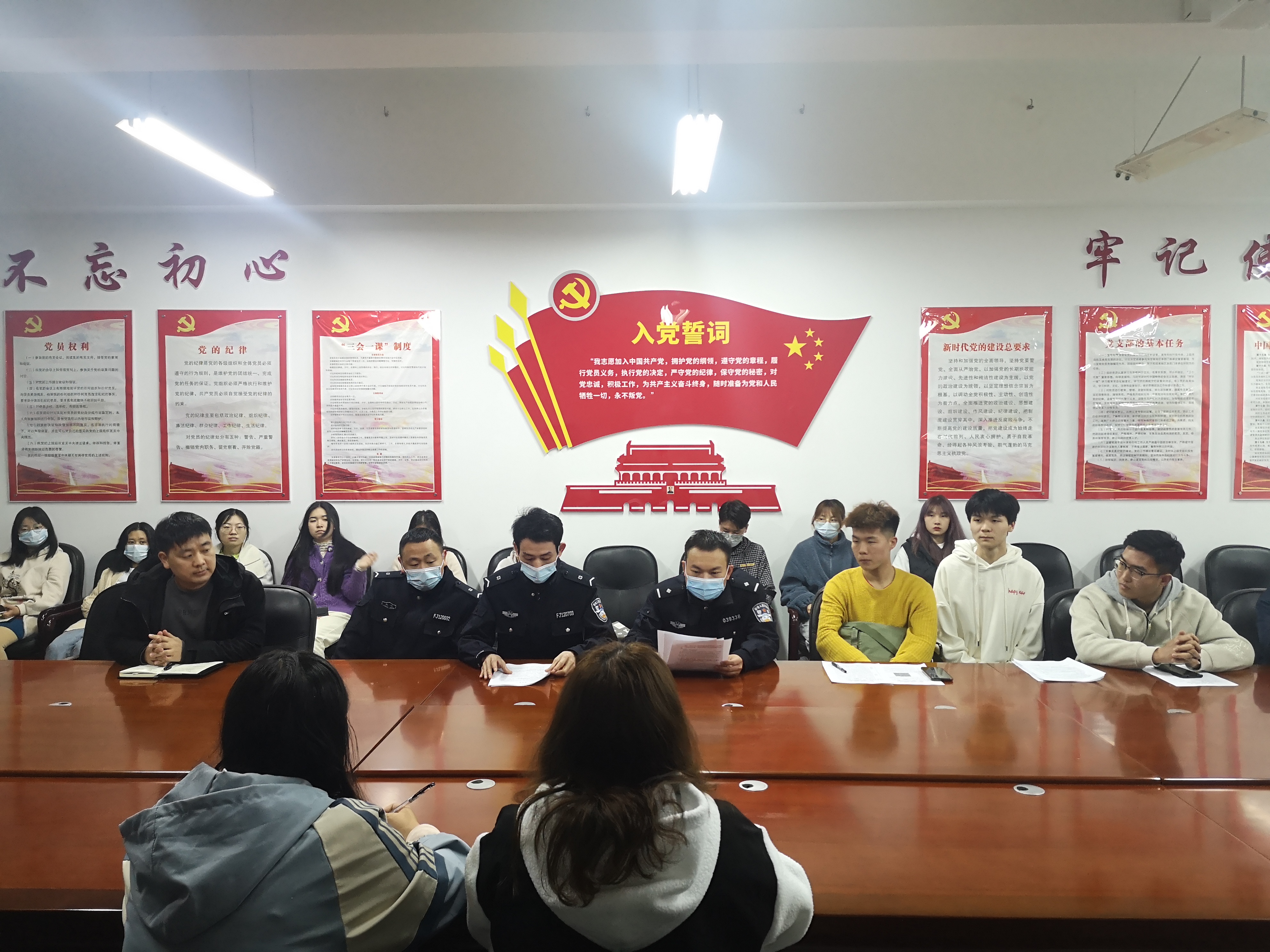 为进一步强化学生防范电信网络诈骗的意识与能力,3月14日晚,经济学院于崇德楼315会议室组织开展防范电信网络诈骗工作部署会。江夏区公安分局庙山派出所副所长邓峰及辖区警官一行四人应邀开展主题宣讲。学院党委副书记黄俊鹏主持工作部署会,学院全体辅导员、各年级班长参加会议。