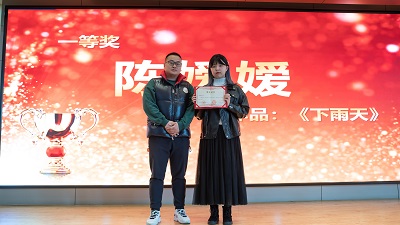紧接着,颁奖典礼正式开始,多位受邀嘉宾为来自武汉不同高校的获奖选手颁奖并合影留念。其中,来自湖北科技职业的陈媛媛的《下雨天》斩得桂冠。