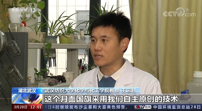 在视频中,报道了由我校徐卫林教授团队历时八年、攻坚克难,研制嫦娥五号月面展示国旗的内容,其中,共产党员、化工学院王运利教授作为团队成员代表在报道中介绍了相关研发过程。