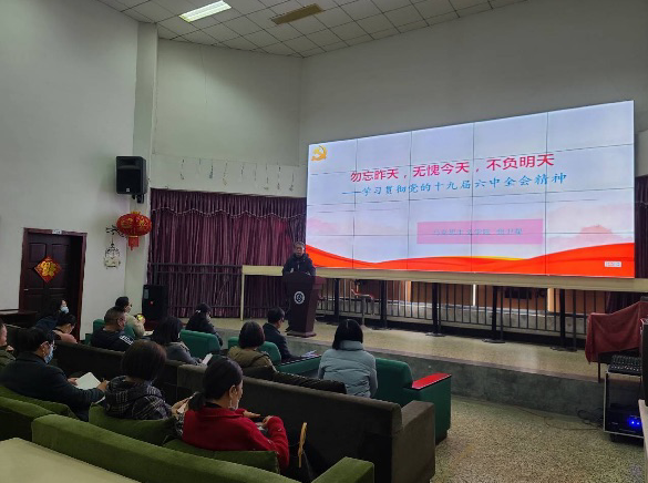 为深入学习贯彻党的十九届六中全会精神,12月9日下午,图书馆、档案馆召开“党的十九届六中全会精神”宣讲报告会,校宣讲团成员马克思主义学院教授商卫星以《勿忘昨天,无愧今天,不负明天》为题作宣讲报告,图书馆党总支书记、馆长熊少平主持会议,图书馆、档案馆全体人员参加报告会。