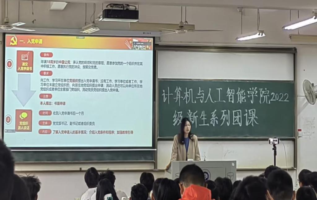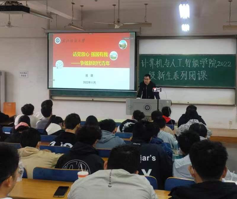 为进一步传承红色基因、赓续红色血脉、培育红色青年,近日,计算机与人工智能学院通过线上线下相结合的模式为2022级新生开展团课教育,邀请学院党委副书记向涛、部分辅导员为新生作了《听党话、跟党走,努力成长为堪当民族复兴重任的时代新人》《不忘初心跟党走,争做新时代青年》《青春向党·与党同行》《如何完成从高中生到大学生的转变》《助学、筑梦、铸人——资助政策解读与校纪校规教育》的主题讲座。