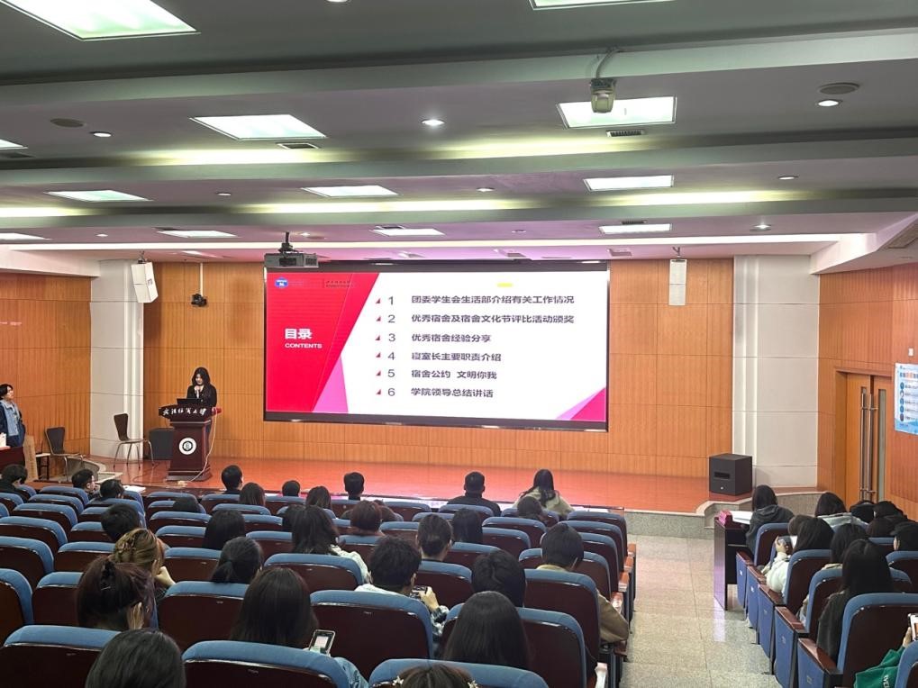 活动伊始,学院团委学生会生活部部长向在场师生介绍生活部工作职责、已开展工作以及拟开展活动情况。随后,学院党委副书记李斗明和书记向荣依次为院公检和宿舍文化节评比出的优秀宿舍颁奖。