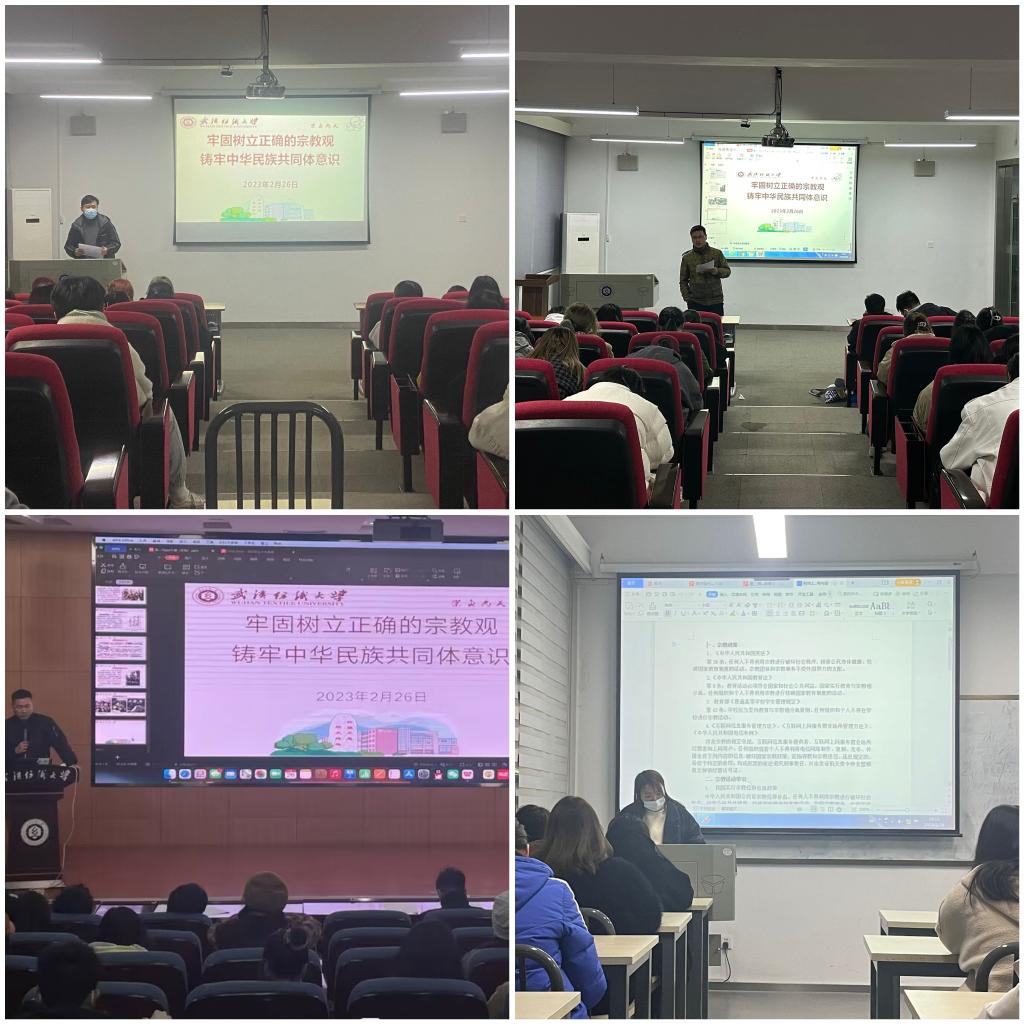 各班班主任还分别从“宗教政策”、“宗教活动常识”等方面进行了宗教知识讲解,结合《中华人民共和国教育法》,重点强调大学生关于宗教活动的“六不准”,引导同学们要树立正确的宗教观,要更加坚定理想信念,增强大学生担当民族复兴重任的责任感和使命感。