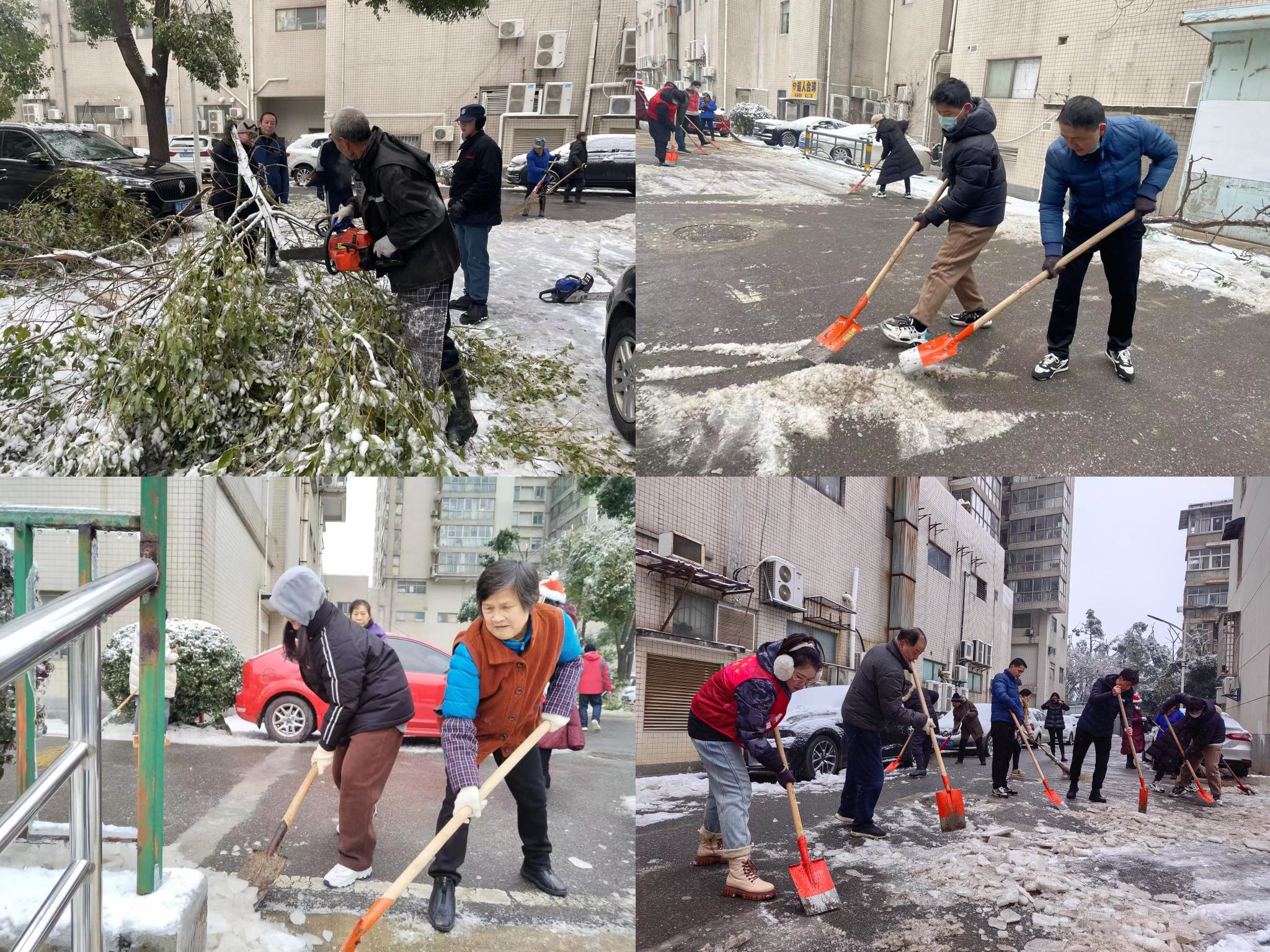 暴雪袭来,南湖家属区满院都是被雪压断的树枝,进出家属区的道路也被大雪封住了,给居民的正常出行和生活带来了诸多的不便。为保障居民的安全出行,纺大社区开展了冬日除雪志愿行动。