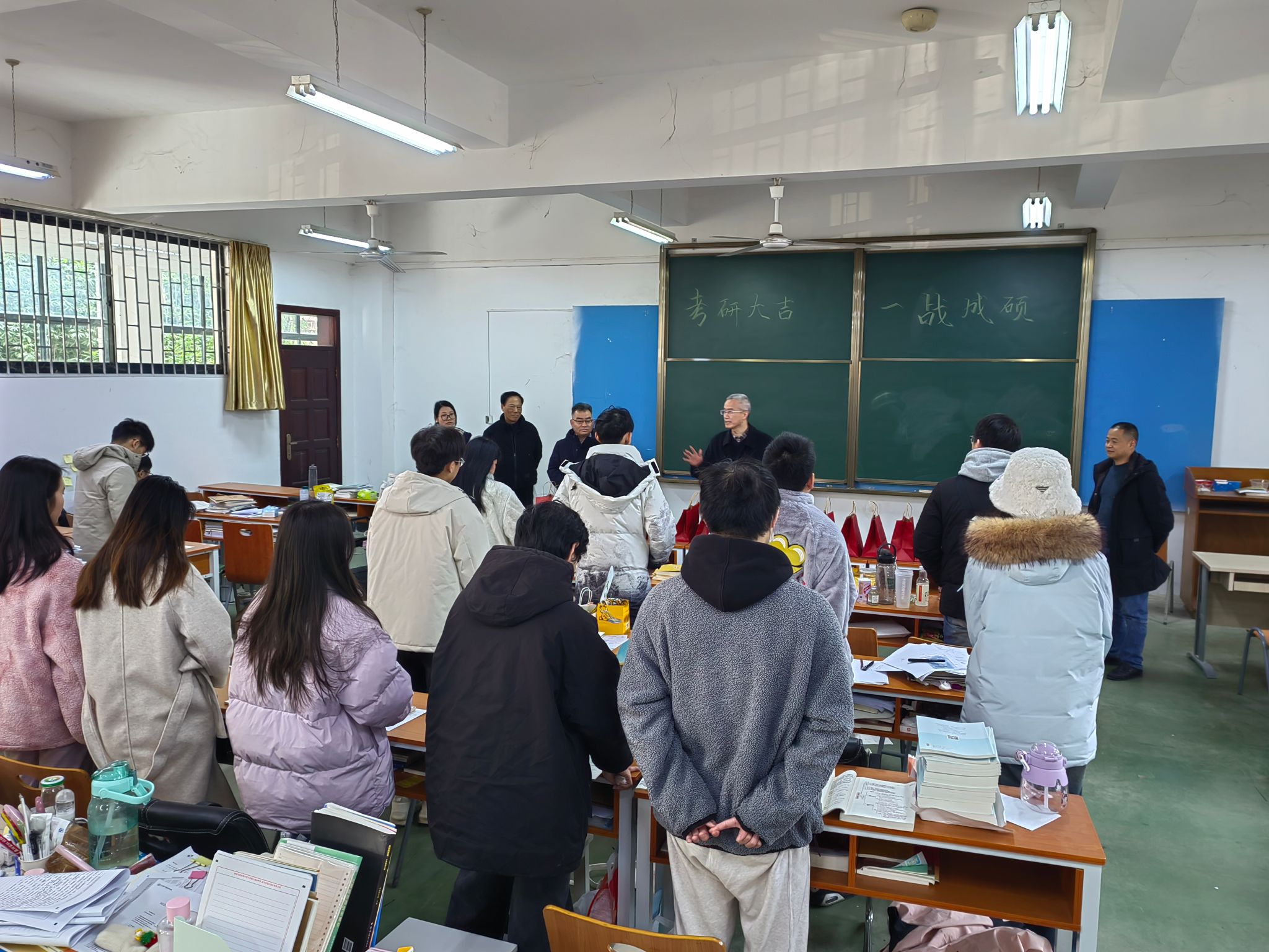 汪院长以自己学生时代的考研经历举例,让大家保持轻松心态,他表示:“学院一直以来都非常重视考研工作,我们希望通过这样的慰问活动,让同学们感受到学院的关心和支持。同时,也希望同学们能够将这份温暖转化为学习的动力,在考研路上不断前进。”