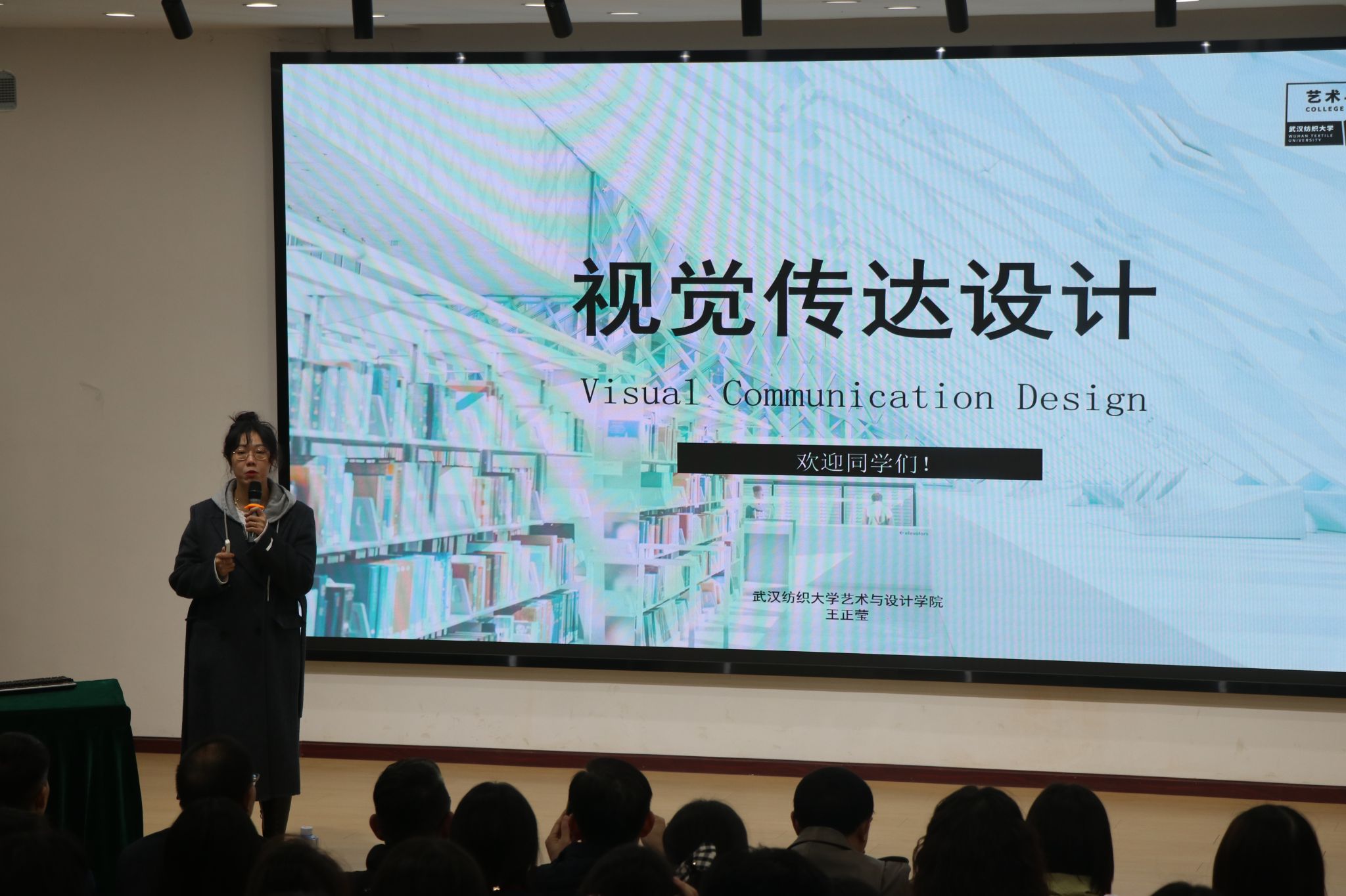 艺术与设计学院的王正莹老师从历史沿革、特色优势、学科未来发展三个方面,详细介绍了视觉传达设计专业的建立与发展、人才培养模式以及优秀学生作品,并表示欢迎同学们报考武汉纺织大学,报考视觉传达设计。