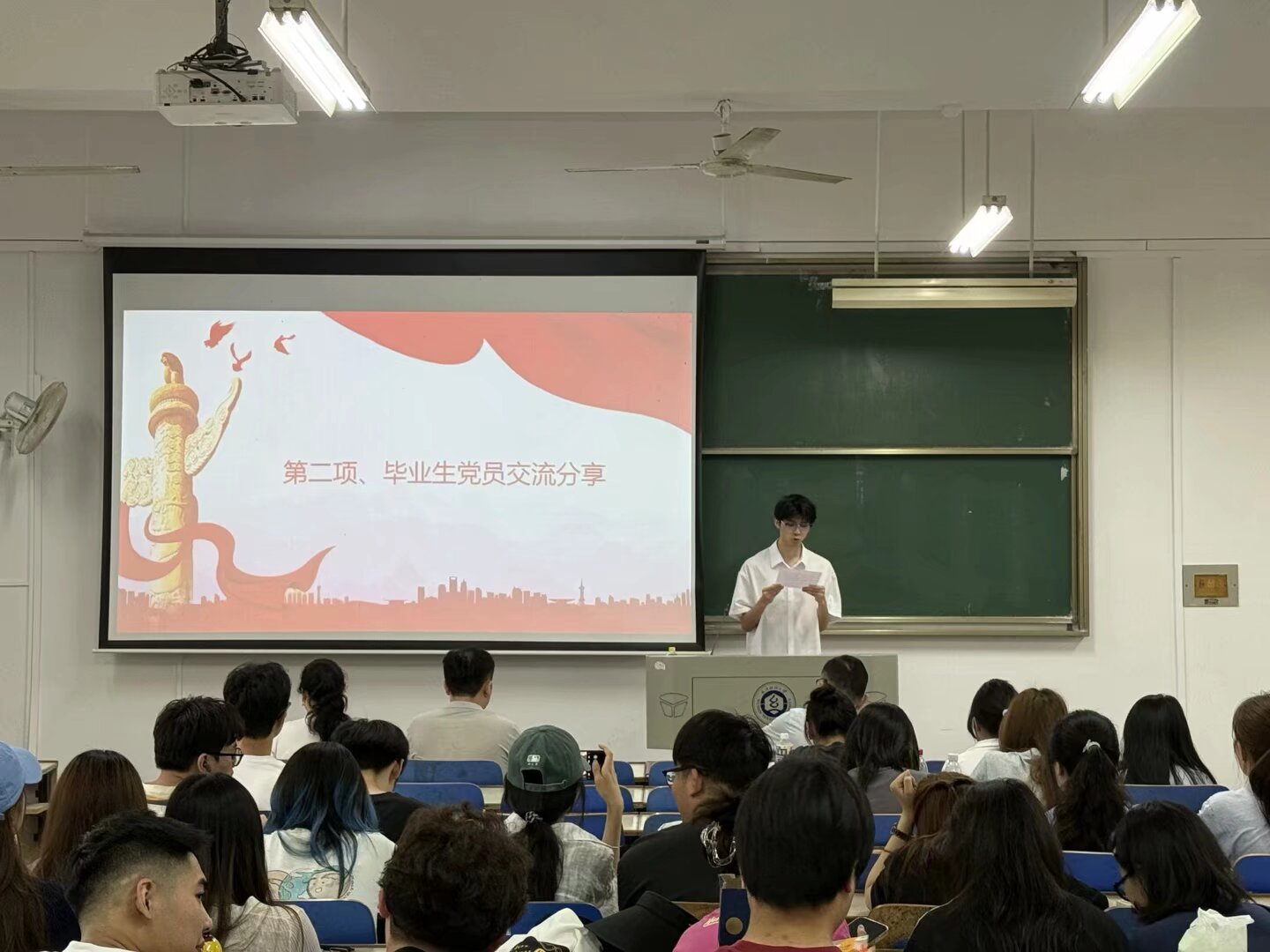 本科生党员代表朱亦婷、黄雨萱,研究生党员代表张嘉浚,伍凯旋,皮青分别作为各自支部代表上台作交流分享。几位党员代表分享了自己在党组织培养下的成长蜕变,表示将牢记母校与党组织的教诲,以党员标准严格要求自己,为党旗增光添彩。