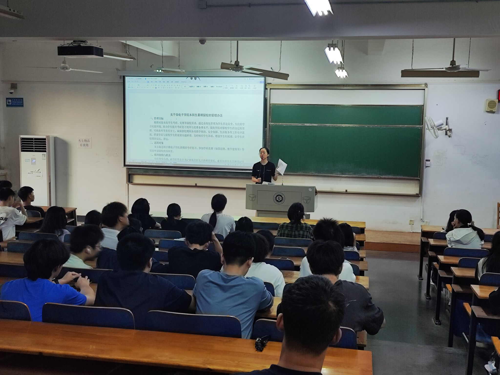 为切实做好暑期留校学生安全管理,增强学生的安全防范意识与自我保护能力,微电子学院于7月3日在崇志楼118教室召开了暑期留校学生安全教育会。学院党总支副书记古江波、辅导员卫周瑶以及全体暑期留校学生参加了此次大会。